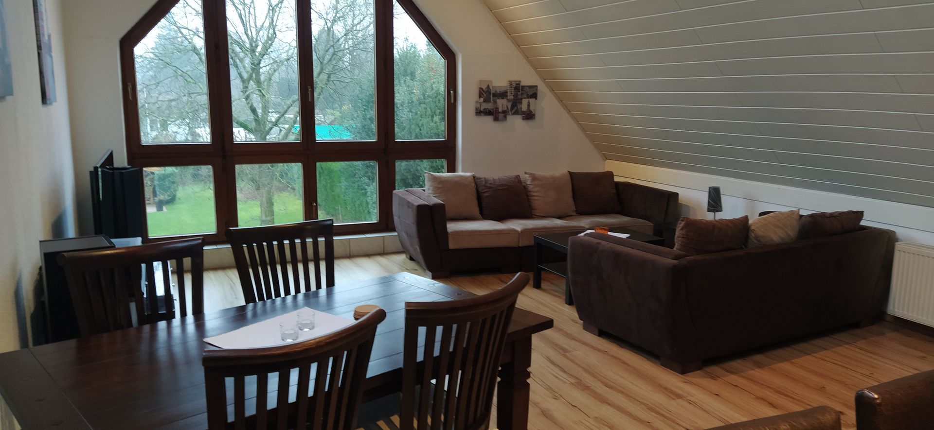 1 großes Wohnzimmer (45qm) mit Bar + Dartscheibe, Sitzecke, Esstisch und Kinderhochstuhl